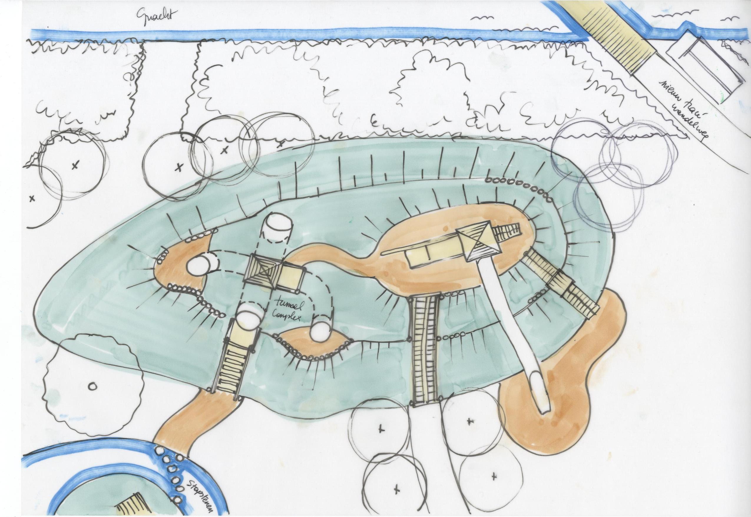 De speeltuin moet een plek worden waarin de kinderen de mogelijkheid hebben om met water te kliederen, kikkers en padden te bekijken, bruggen en hutten te bouwen, en nog veel meer. Het wordt dus een speeltuin met grond, hout, heuvels, water, zand, bloemen, stenen, vruchten en uiteraard de daarbij bijpassende speeltoestellen. Zij kunnen in een gevarieerde omgeving met gras, struiken, bomen, half-verharding en water vrijwel alle vormen van spel uitoefenen. De kinderen bepalen daar zelf hoe ze ermee gaan spelen. Je kunt er dus veel bouwen met takken en stenen, spelen met water en zand. Kortom, je maakt je eigen speelse wereld met heel veel speelprikkels.